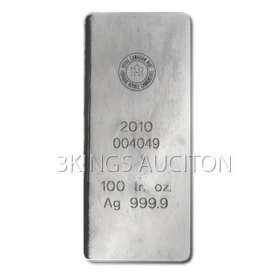 Silver Bars: Royal Canadian Mint 100 oz .9999 fine **|**|** Silver Bars: Royal Canadian Mint 100 oz .9999 fine ; MSRP: $7100