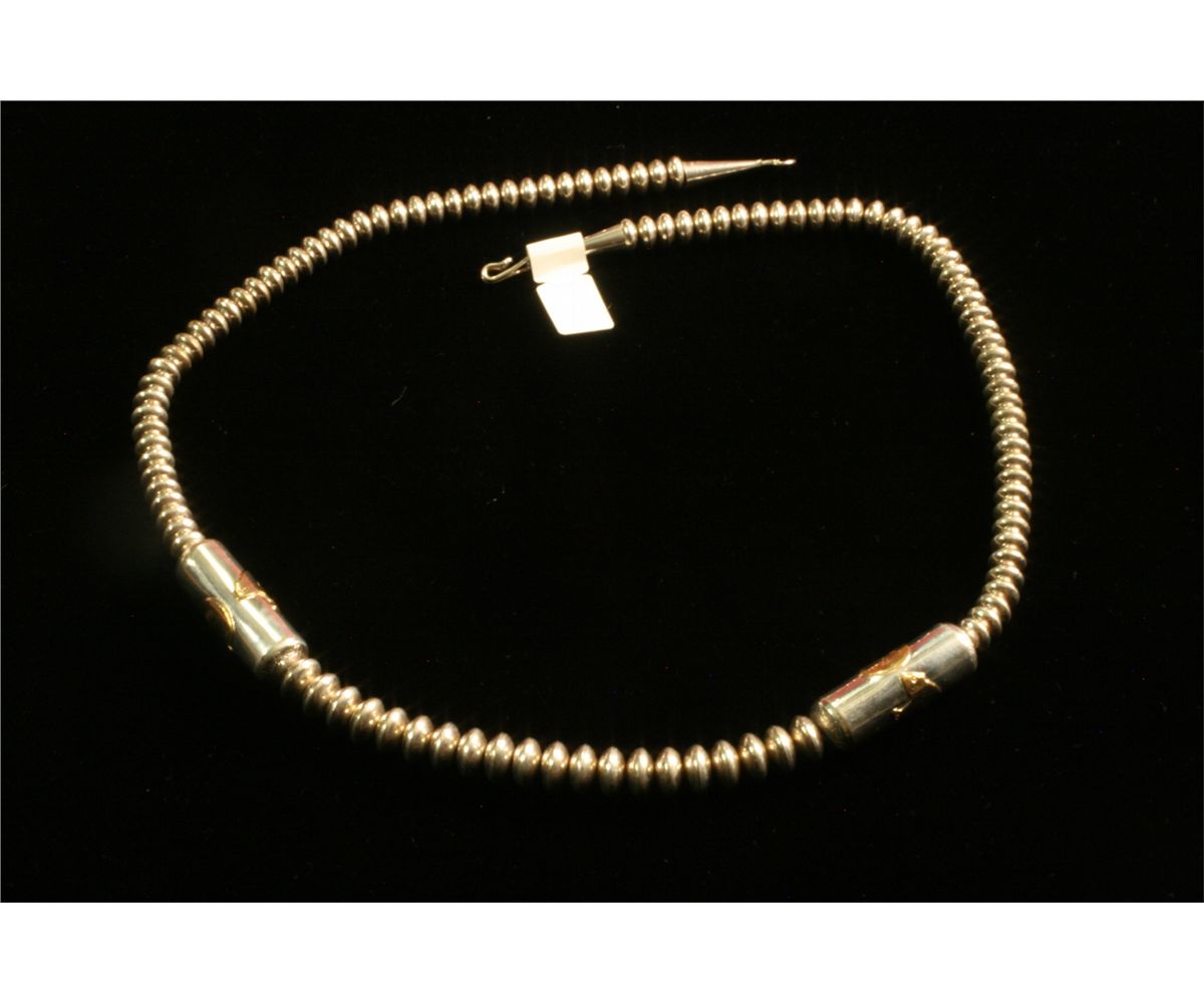 Silver Beaded Necklace, With cylindrical beads with Gold overlay on gold bears, 22" Long, -530026-