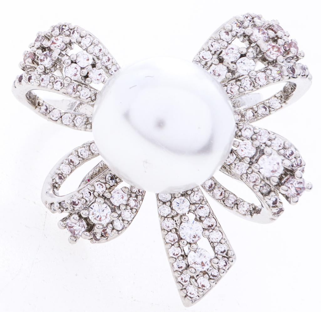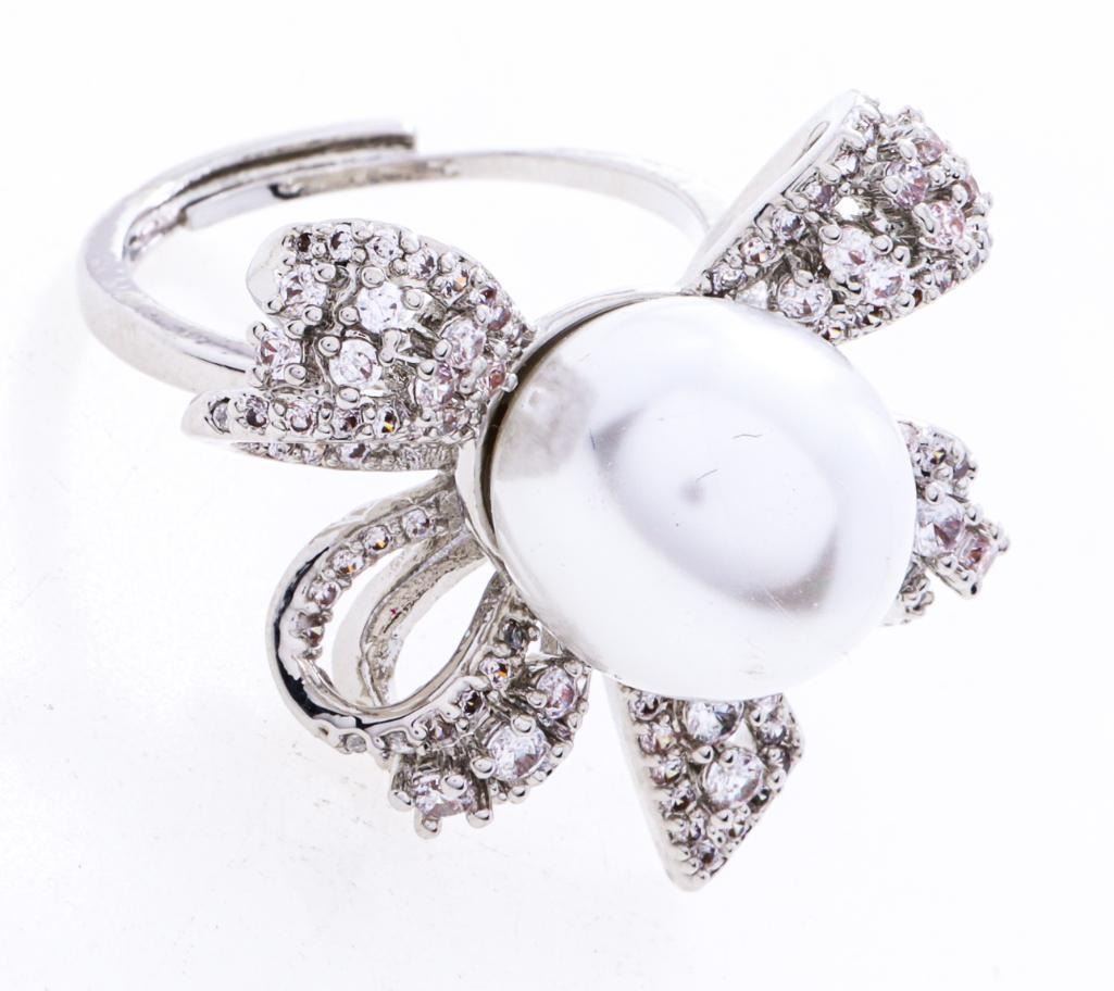 Silver Bow Style Ring w/ Pearl - Adjustable Size
