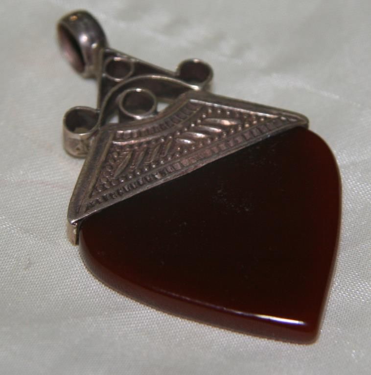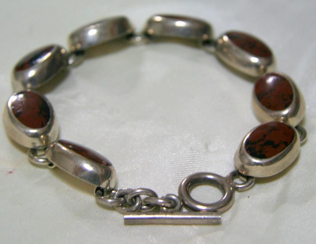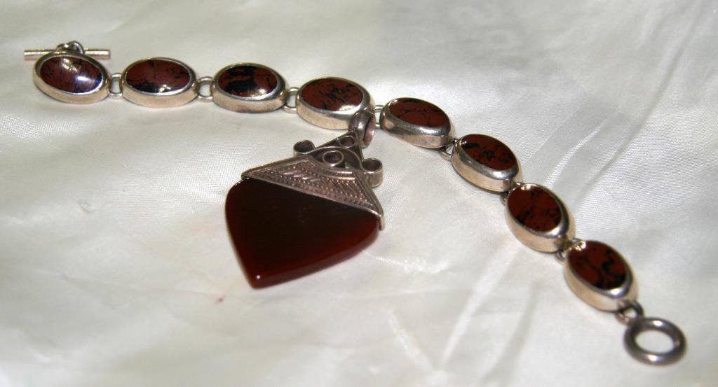 Silver Bracelet & Pendant w/ Brown Native Stone
