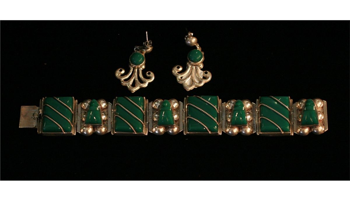 Silver Bracelet with Matching Earrings, Mexican jewelry set, -227239-227239b-