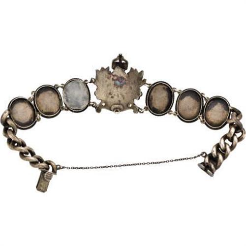 <B>Kaiser William Commemorative Silver Bracelet with Portrait Miniatures</B></I><BR><I>German, stamped 800 </B></I><BR><BR>Designed as a silver bracelet with separate images of the Emperor and his six sons, each within oval frames, the central link depicting William II, Emperor of Germany (r. 1888-1918) within a silver frame of laurel leaves below the Imperial Hohenzollern crown, flanked on each side by three smaller miniatures, to his right, of Princes William, Frederick and Albert, and to his left, Princes August William, Oscar and Joachim, each attached to a silver link back chain-7 1/2 in. long<BR><BR><BR><b>Shipping:</b> Requires 3rd Party Shipping (<a target="_blank" href="http://www.heritageauctions.com/common/shipping.php">view shipping information</a>)
