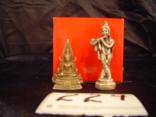 2" Silver Krishna playing flute and 1.5" Silver Seated Brahma. Perfect for altar or other small places. From Nepal.