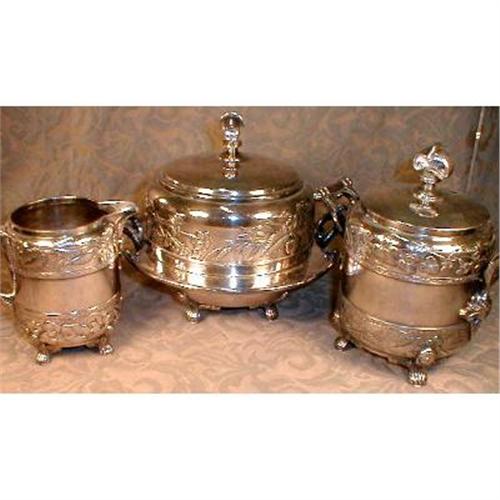 Three matching pieces of Victorian silverplate by Rogers & Brothers. The elegant design may be inspired by the Pre-