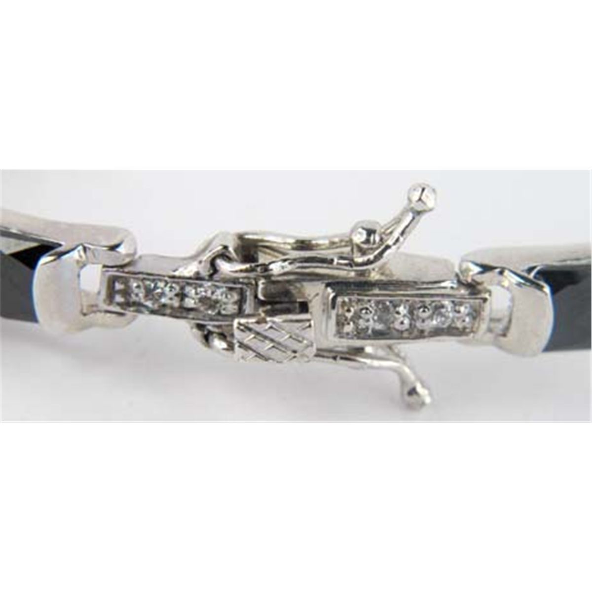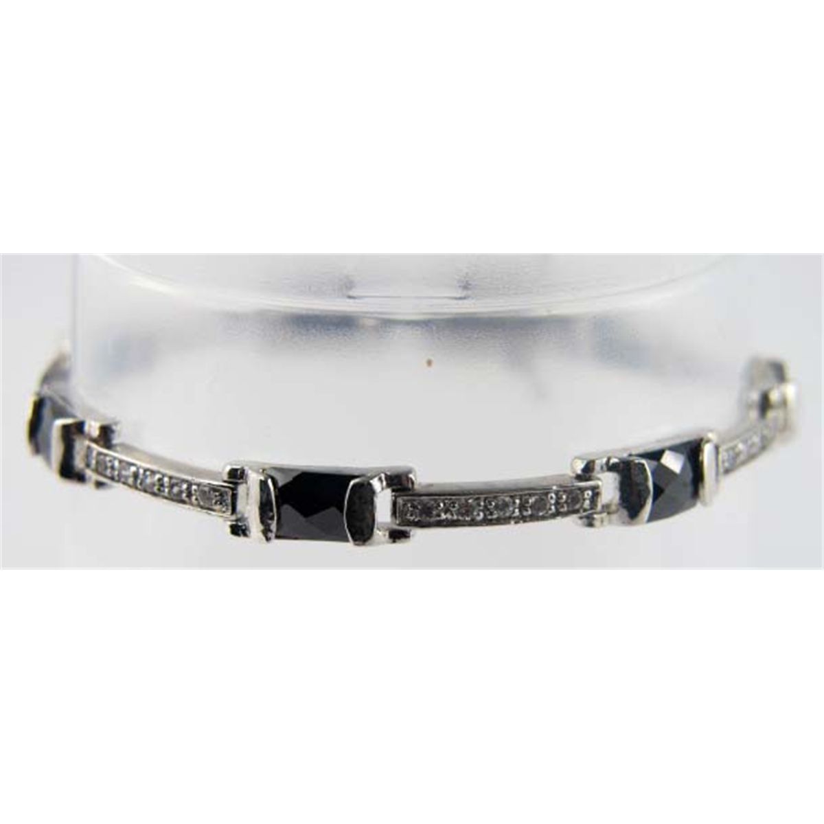 Silver CZ Black Onyx Bracelet. The total weight of the bracelet is 13.1 grams. The weight of the CZ is 0.34 ct approximately. The length of the bracelet is 7". The bracelet is 5 mm wide.