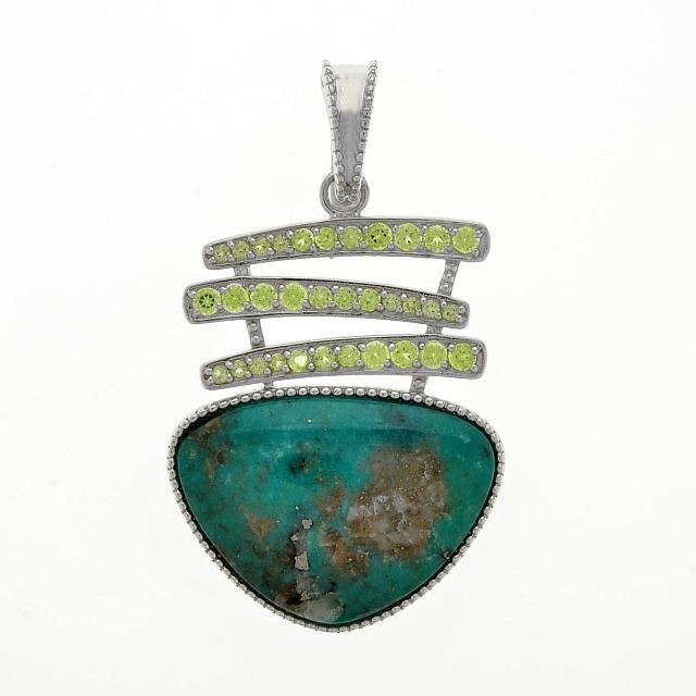 Pangea Mines makes a lovely fashion statement this eye-catching pendant necklace from the Mined in America Collection. Beautifully crafted in rhodium over sterling silver and embellished with genuine Campo Frio turquoise accented by sparkling peridot, this lovely design is complemented by a 24” silver chain.