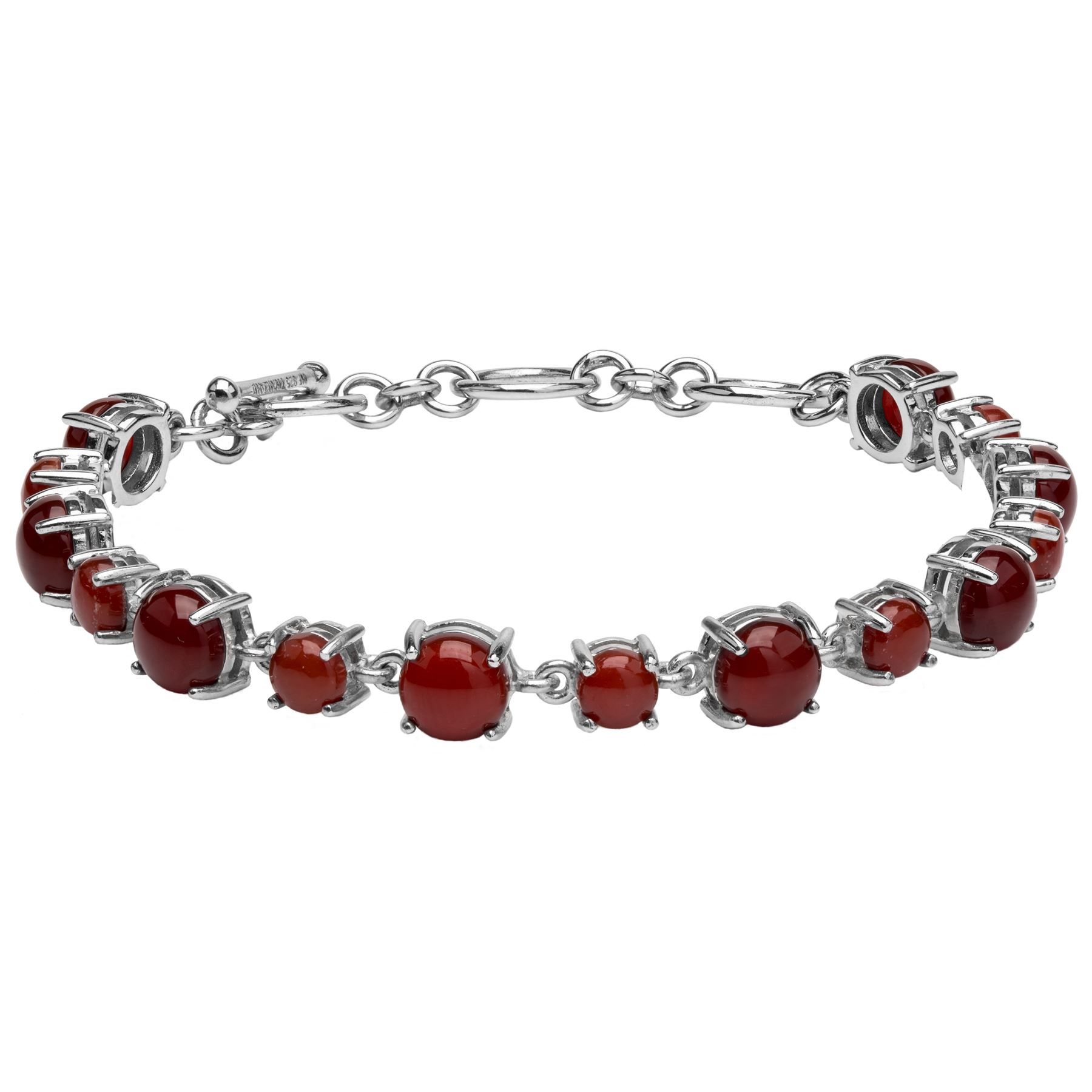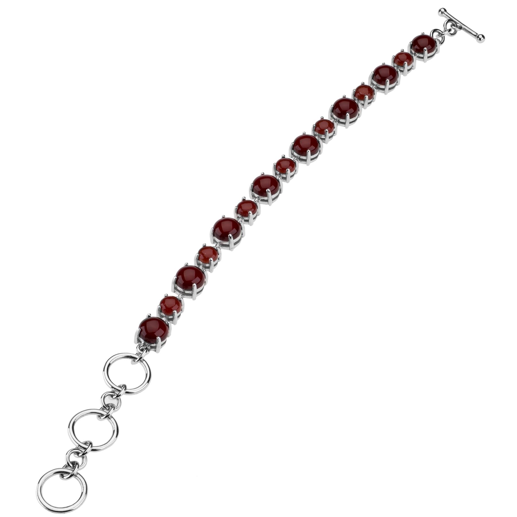 Crafted in 925 Sterling Silver brilliant stations of Genuine Carnelian appear in two sizes and alternate across your wrist until they reach the toggle clasp, which has three jump rings so you can find just the right fit. Allow these Chic drops of color to decorate your wrist! Metal: Rhodium over sterling silver