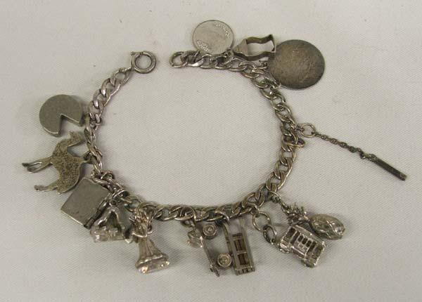 Silver Charm Bracelet with 12 Charms. Measures approx. 7.5''L. Buyers Pay Actual Shipping and Handling Charges(see terms and conditions for more information).