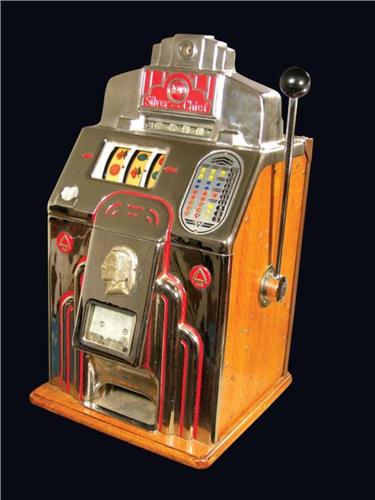 Silver Chief 10 Cent Slot Machine, Jennings. Oak cabinet, all original excellent working condition w/keys.