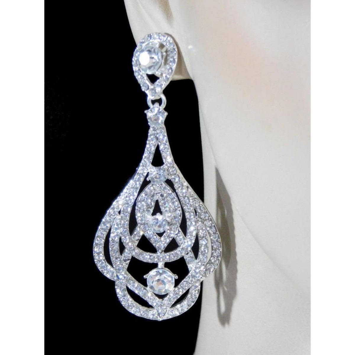 Upscale Designer Jewelry (Costume) Item Description Polished Silver Tone. Metal: Alloy Material: Glass Brand: Ens Color: Silver Clear Main Stone: Rhinestone - 10090-040618-EB-66835