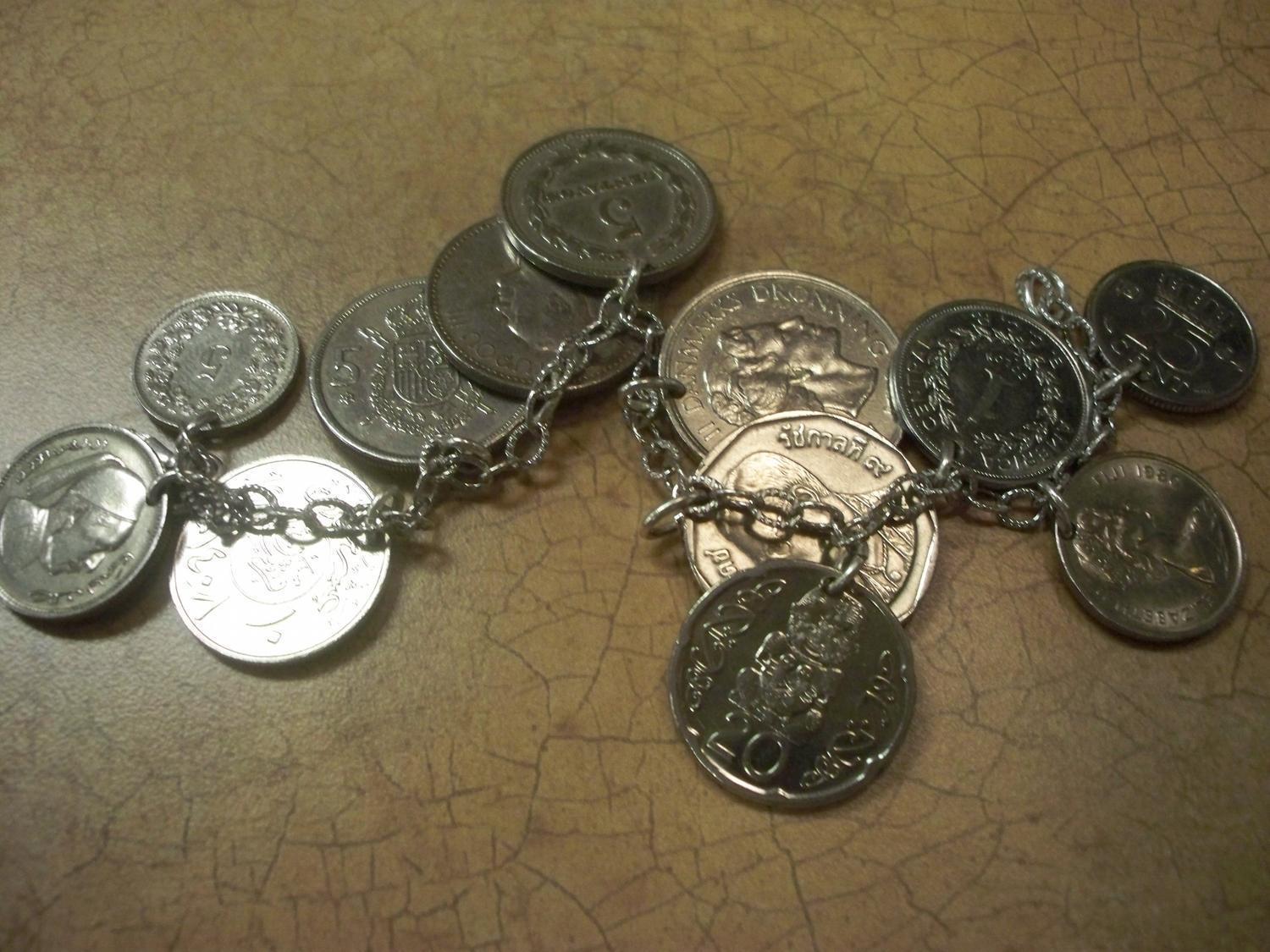 Silver Coin Bracelet W/Foreign Silver Coins, Approx 12 Coins