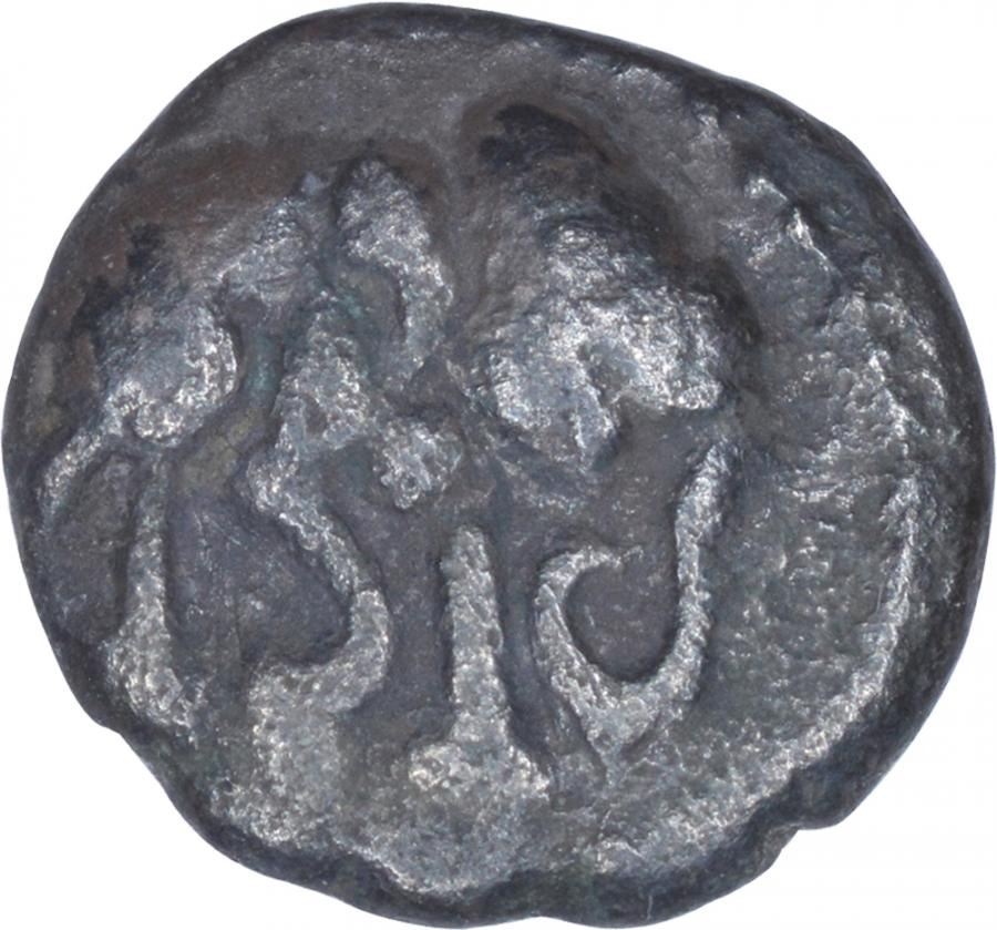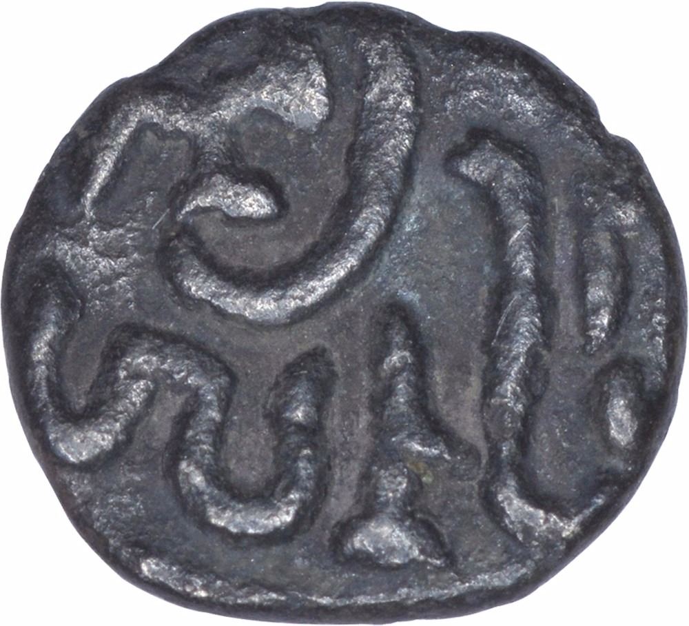 Chalukyas of Gujarat, Rana Hasti, Silver Dirham,Obv: an elephant standing to right with beaded border around, Rev: nagari legend shri rana hasti, 0.40g, 8.43mm, about extremley fine, Scarce.