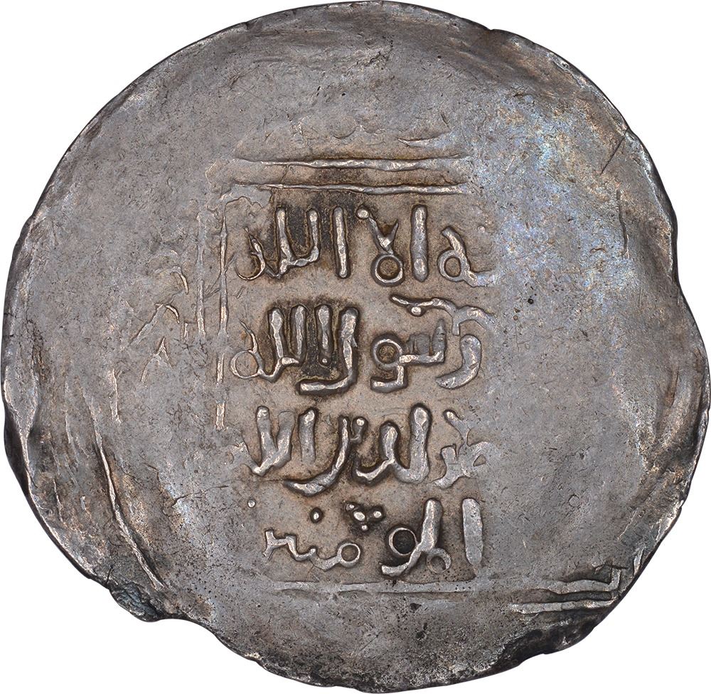Delhi Sultanate, Taj-Ud-Din Yildiz (AH602-612/1206-1215AD), Ghazni Mint, Silver Dirham, AH 607, With the name of Caliph Al Nasir, Obv: kalima shahada, at bottom al nasir ud dunya wal din amir ul mominin, Rev: as sultan-ul-azam muiz-ud-dunya wal din abul muzaffar, 4.46g, 30.48mm, (GG # D25), about very fine, Scarce.