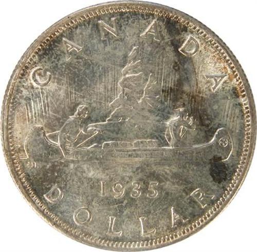 Canada Silver Dollar 1935 ICCS MS-65. Light golden toning