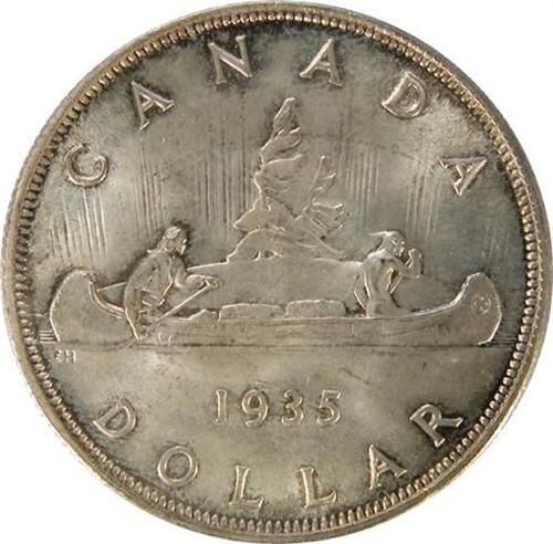 Canada Silver Dollar 1935 ICCS MS-65. Pale golden toning