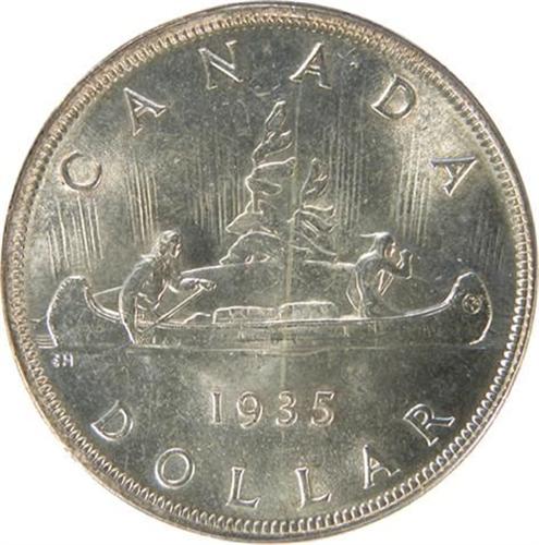 Canada Silver Dollar 1935 PCGS MS-63. Pale golden toning