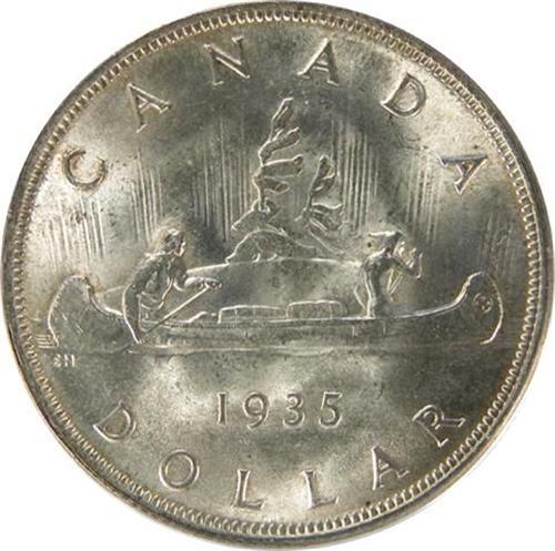Canada Silver Dollar 1935 PCGS MS-64. Pale golden toning