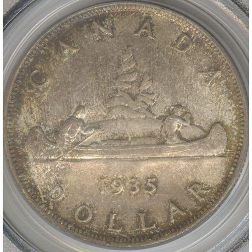 Silver Dollar 1935, graded PCGS MS-65. Light gold tone, a nice gem.