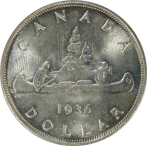 Canada Silver Dollar 1936, Very Choice Uncirculated. This is a fully struck piece with great lustre and pale golden toning