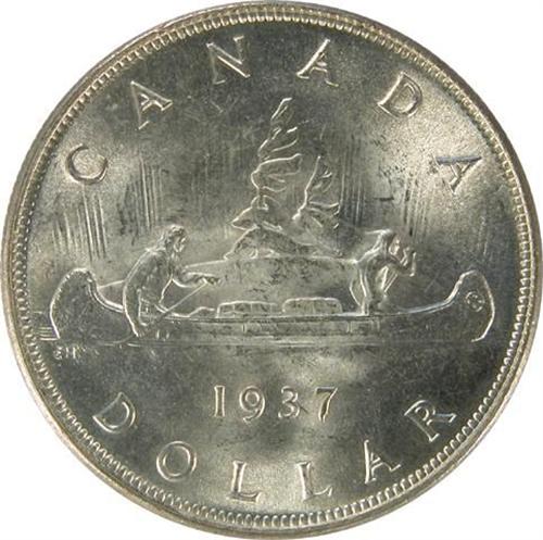 Canada Silver Dollar 1937 ICCS MS-64. This pale golden toned piece is tied as the highest graded by ICCS