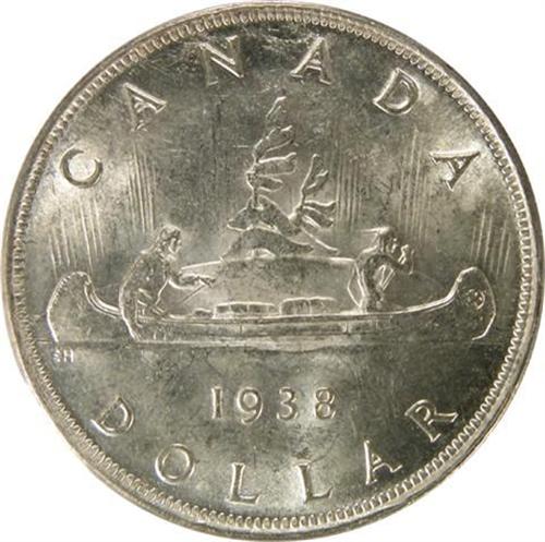 Canada Silver Dollar 1938 ICCS MS-60. Pale golden toning