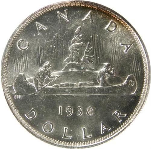 Canada Silver Dollar 1938 ICCS MS-63. Pale golden toning