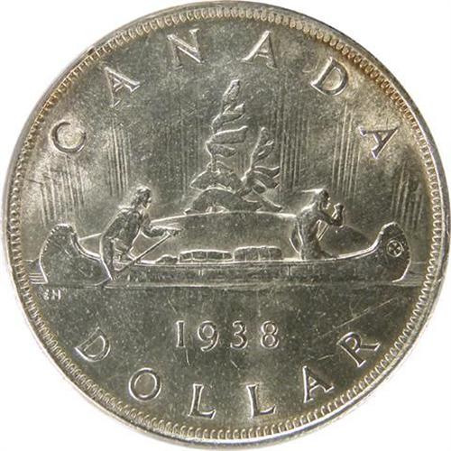 Canada Silver Dollar 1938 PCGS AU-55. Pale golden toning