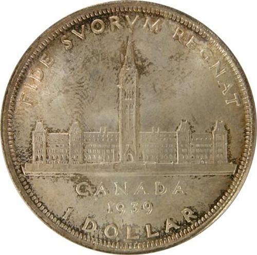 Canada Silver Dollar 1939 ICCS MS-64. Pale golden toned