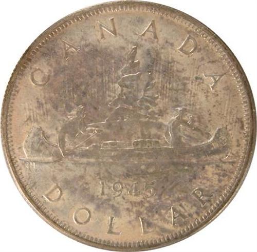 Canada Silver Dollar 1945, ICCS MS-60. Light golden toning