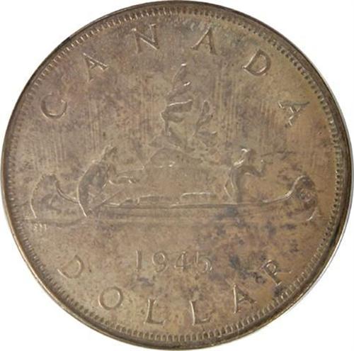 Canada Silver Dollar 1945 PCGS MS-61. Mother of pearl toned