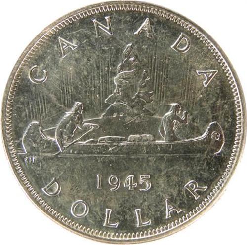 Canada Silver Dollar 1945 PCGS MS-62. Pale golden toning