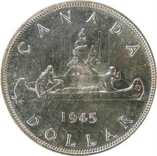 Canada Silver Dollar 1945 PCGS MS-62. Near untoned