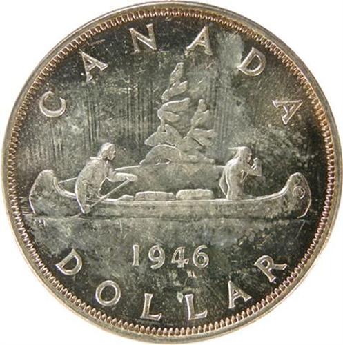 Canada Silver Dollar 1946 PCGS MS-62. Pale golden toning