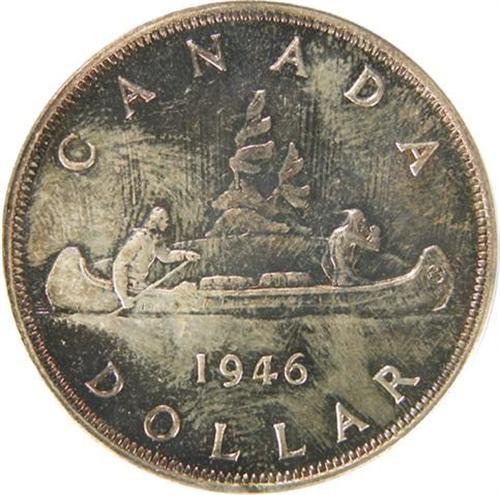 Canada Silver Dollar 1946 PCGS MS-62. Light amber toning