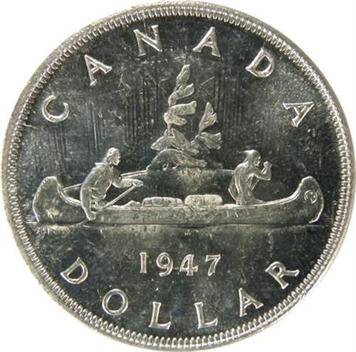 Canada Silver Dollar 1947 Blunt 7, ICCS MS-60. Untoned