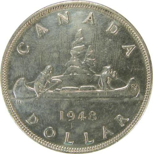 Canada Silver Dollar 1948, EF. Pale golden toning