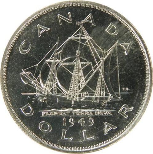 Canada Silver Dollar 1949 ICCS PL-64. Near untoned