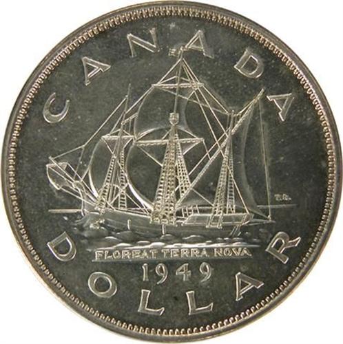 Canada Silver Dollar 1949 PCGS PL-63. Pale golden toning