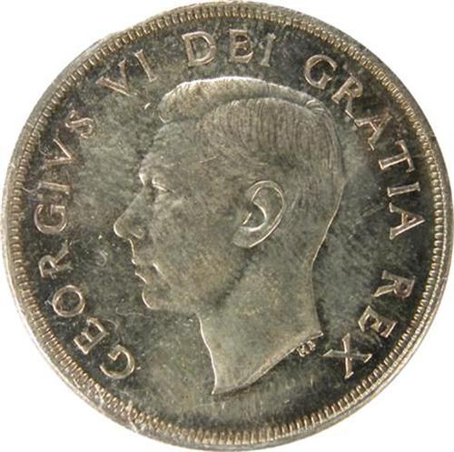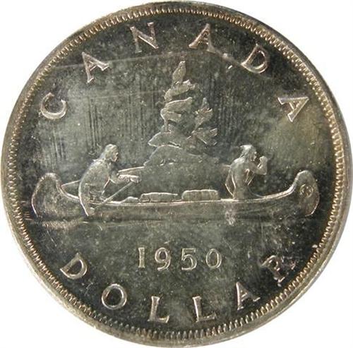 Canada Silver Dollar 1950 Arnprior ICCS MS-64. A light golden toned piece that is tied with ten as the highest by ICCS