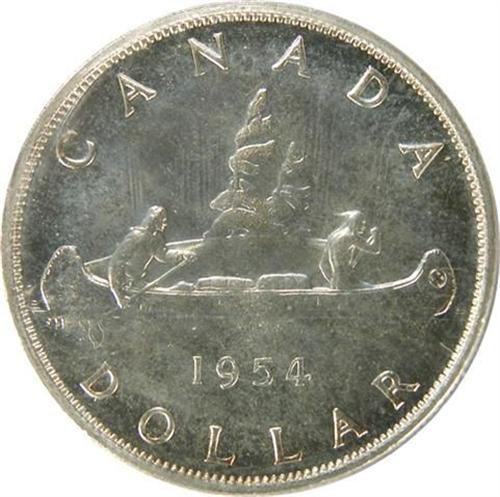 Canada Silver Dollar 1954 ICCS PL-64 (Cameo). Pale toned
