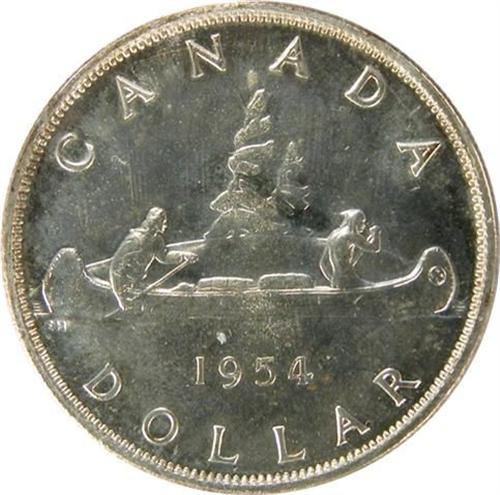 Canada Silver Dollar 1954 ICCS PL-64 (Cameo). Pale toned