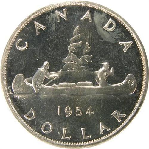 Canada Silver Dollar 1954 ICCS PL-65 Cameo. Untoned