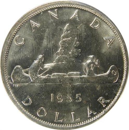 Canada Silver Dollar 1955 ICCS MS-64. Pale golden toning