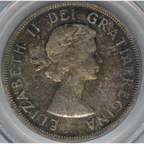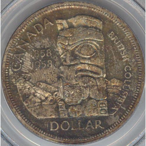 Silver Dollar 1958, graded PCGS MS-65. Superb toning with full underlying luster. Flashy coin.