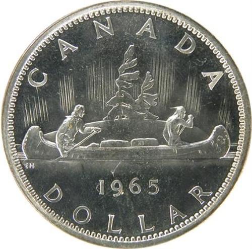 Canada Silver Dollar 1965 Type 3 PCGS PL-67. This is a superbly lustrous and near flawless untoned piece with ultra heavy cameos. It is tied highest graded by PCGS