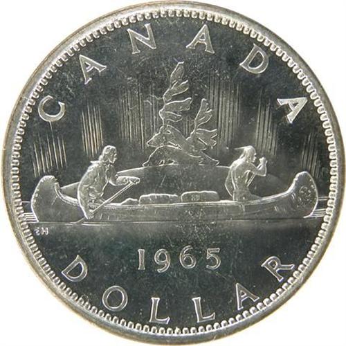 Canada Silver Dollar 1965 Type 3 PCGS PL-67. This is a superbly lustrous and near flawless untoned piece with ultra heavy cameos. It is tied highest graded by PCGS