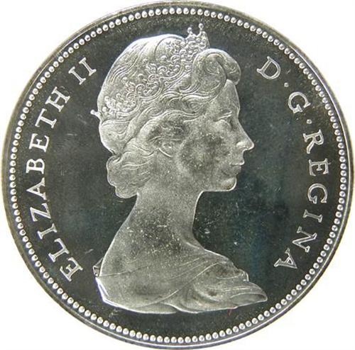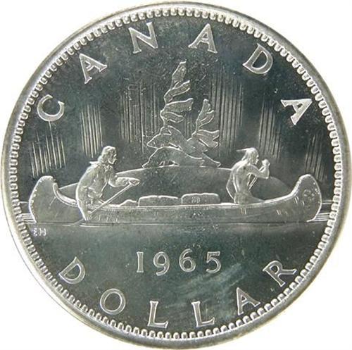 Canada Silver Dollar 1965 Type 3 PCGS PL-67. This is a superbly lustrous and near flawless untoned piece with ultra heavy cameos. It is tied highest graded by PCGS