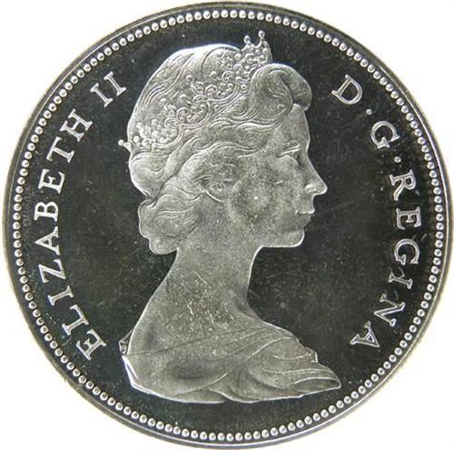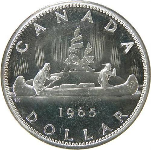 Canada Silver Dollar 1965 Type 3 PCGS PL-67. This is a superbly lustrous and near flawless untoned piece with ultra heavy cameos. It is tied highest graded by PCGS