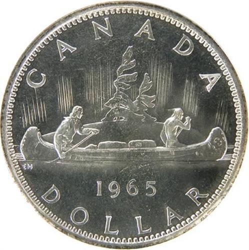 Canada Silver Dollar 1965 Type 3 PCGS PL-67. This is a superbly lustrous and near flawless untoned piece with ultra heavy cameos. It is tied highest graded by PCGS