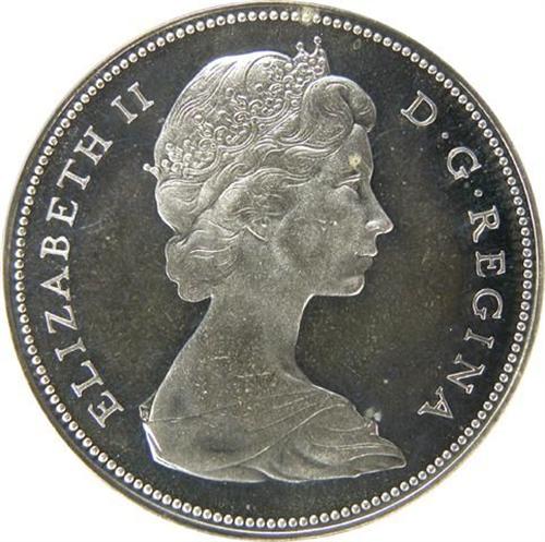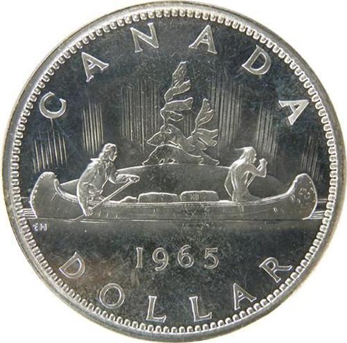 Canada Silver Dollar 1965 Type 3 PCGS PL-67. This is a superbly lustrous and near flawless untoned piece with ultra heavy cameos. It is tied highest graded by PCGS